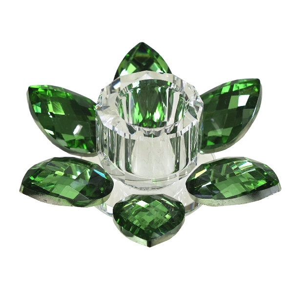 Suport lumanare Lotus, sticla verde 11x4 cm