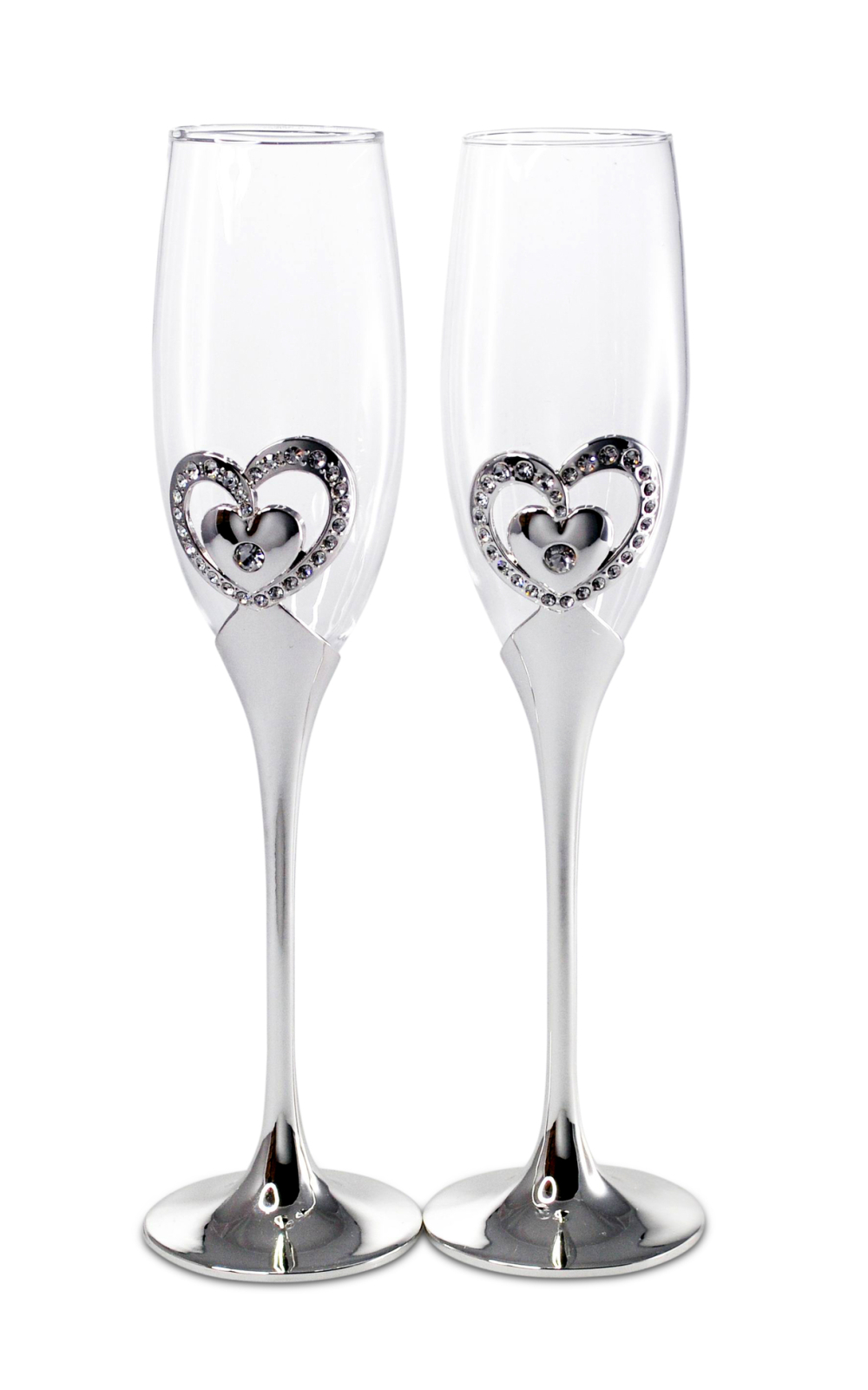 AZAY CASA Set 2 pahare sampanie argintate inima